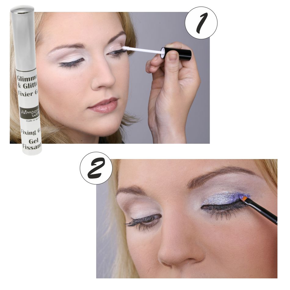 Pasul 1: Aplicați gelul de fixare Glimmer & Glitter ca bază adezivă: întins, doar ca eyeliner sau pe machiajul deja existent.